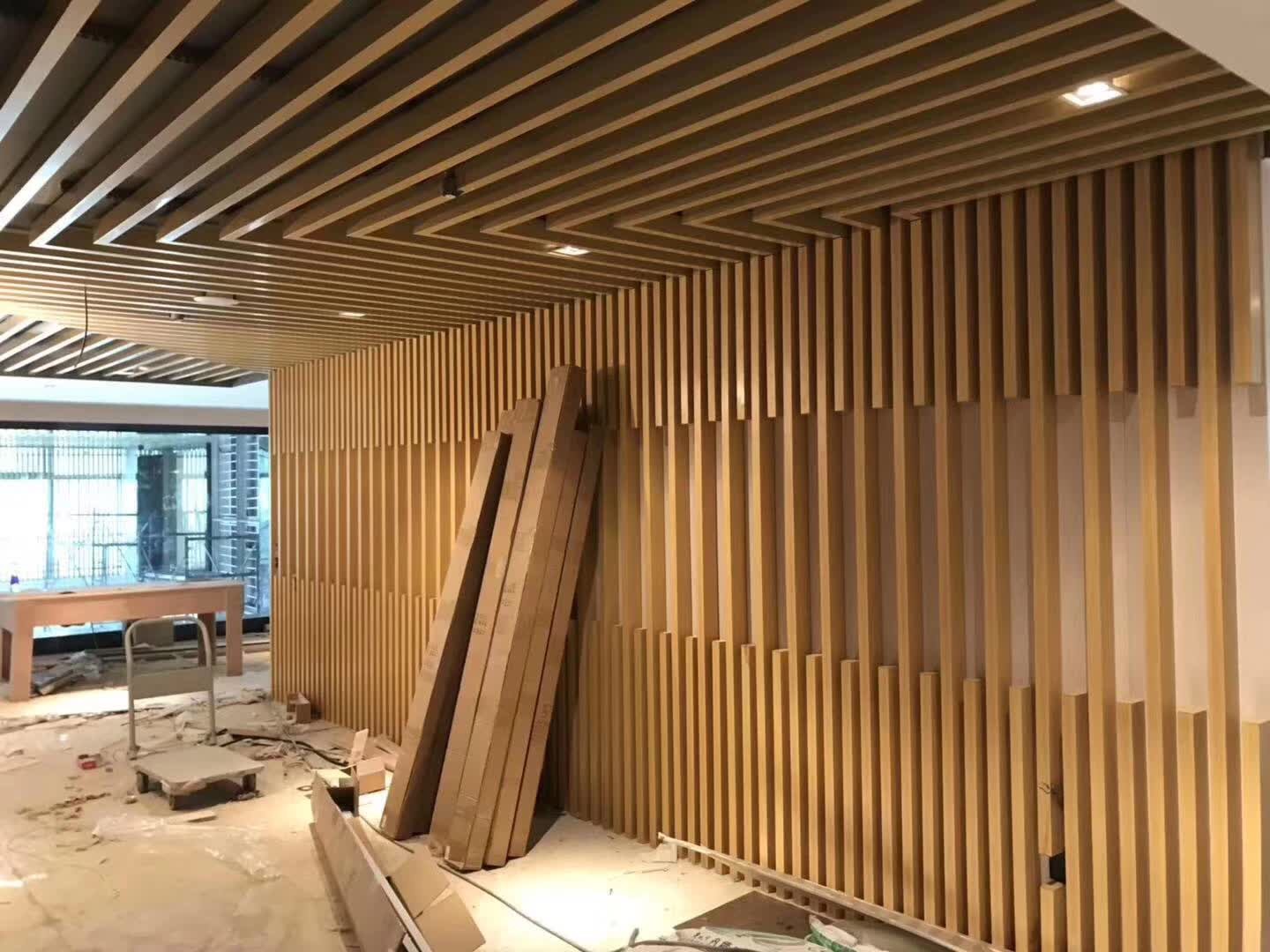 弧形铝方通吊顶在现代建筑中几乎抬头可见,无处不在,木纹铝方通是一种用在吊顶,拆卸比较方便的材料之一,样式各种各样,使用了它可以开阔视野、加快室内空气的流通