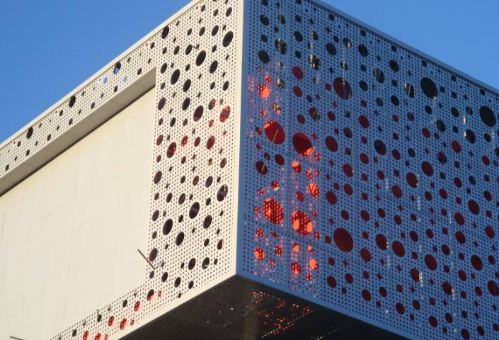 穿孔铝单板 主要采用优质铝合金板经过机械穿孔而成。作为铝单板众多产品的一种,它个性、时尚,而且容易塑...